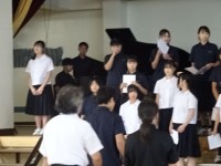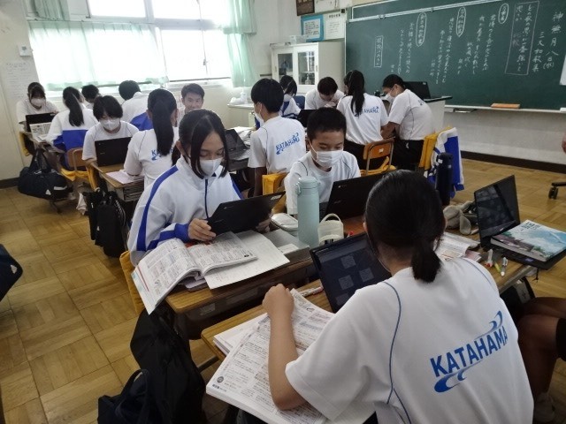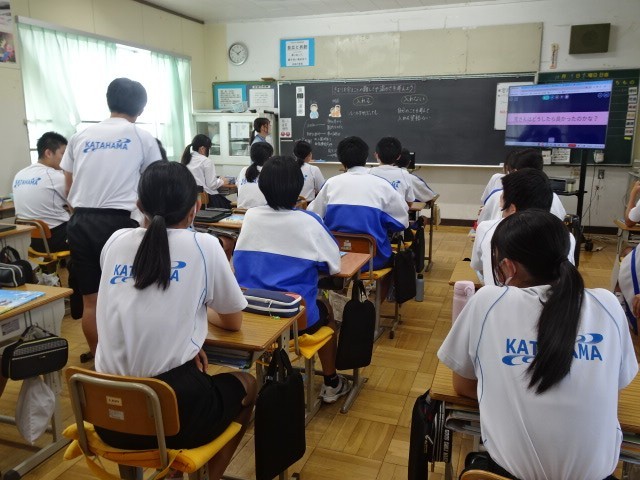 3年生は、A組が数学と国語、B組が道徳でした。数学は2次関数を使ってリレーでタイムロスをしない条件を考えていました。また、国語では3つの短歌の中から課題に一番合うと思うものを選びその根拠を友人に伝える授業でした。何度か相手を変えて伝えていくうちに選んだ理由がはっきりとしていきました。道徳は、「二通の手紙」です。価値にそって自分事として語り合っていたので、決まりの大切さに揺れる思いを深めることができました。