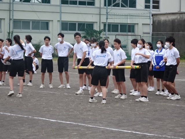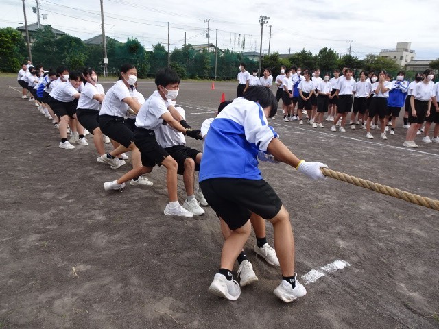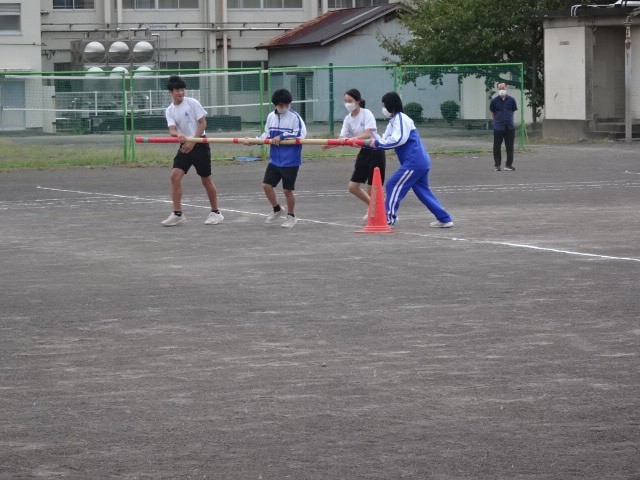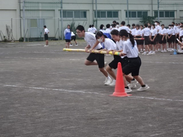5時間目は縦割り種目の練習です。種目担当責任者の3年生がそれぞれ「リレー」「綱引き」「台風の目」に分かれて説明をしてから、練習を始めました。「綱引き」は最初から全力で対戦していました。リレーも最後に勝負をしましたが、接戦でした。