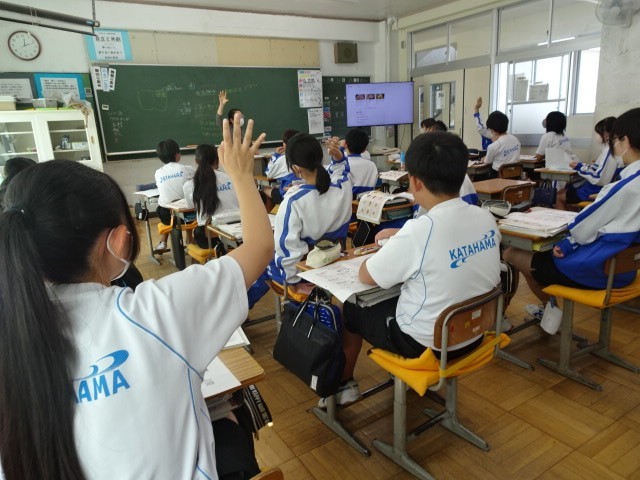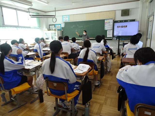 2年A組は技術家庭の家庭分野です。望ましい食習慣の観点から「健康によいおかず」や「がんになりにくいおかず」等の学習をしていました。簡単にできるおかずの紹介があり、家庭でも作れそうです。例えば、発酵食品は健康によいと言われていますが、それらを使った製品には添加物が多く含まれているものもあります。成分の記載に注意が必要なようです。