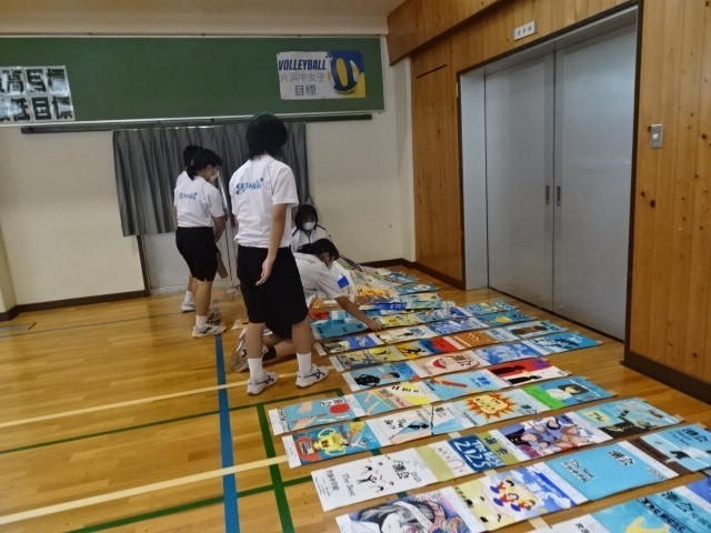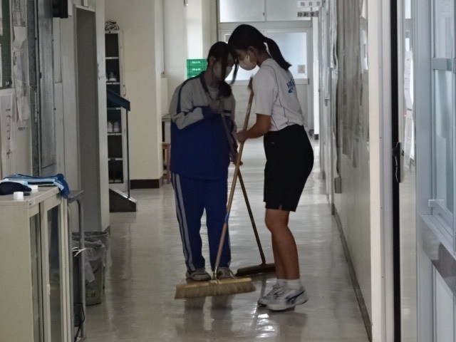 明日はいよいよ潮会文化の部です。午後から全校生徒が準備に入りました。文化の部の係は会場準備、それ以外の係の生徒は雨のため校舎の清掃活動です。それぞれ素早く細かいところまで丁寧に行っていました。