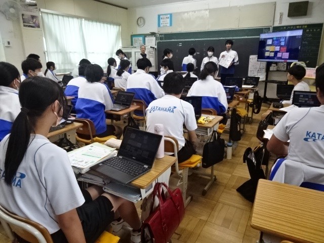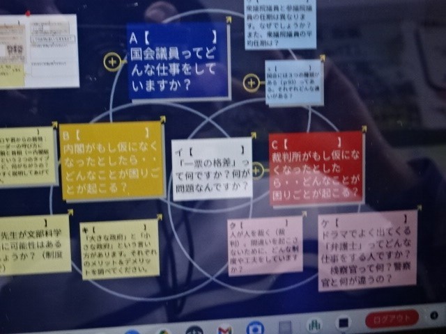 3年B組は社会です。今まで学習してきた三権分立について、またその中でも「一票の格差について」や「弁護士、検察官、警察官の違いは?」などの疑問について、誰が何を調べるか担当を決めていました。