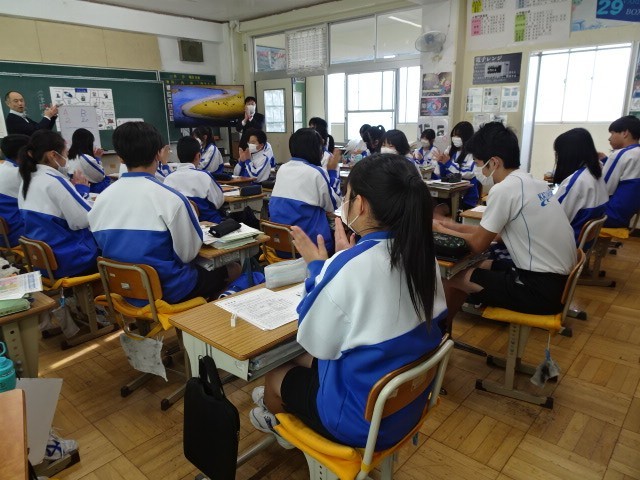 3年A組も社会で、沼津間税会の方に話をしていただきました。A組も、小さな政府がよいのか大きな政府がよいのかを調べた生徒が発表してから皆で考えました。小さな政府を支持する生徒は、税金を安くしてもっと個人の責任を果たすべきだなどの意見を持ち、大きな政府を支持する生徒は、病気になったときや災害が起きたとき、高校の無償化などの支援を必要とする人はいるから税金が高くてもそちらがよいなどと言う意見を挙げていました。