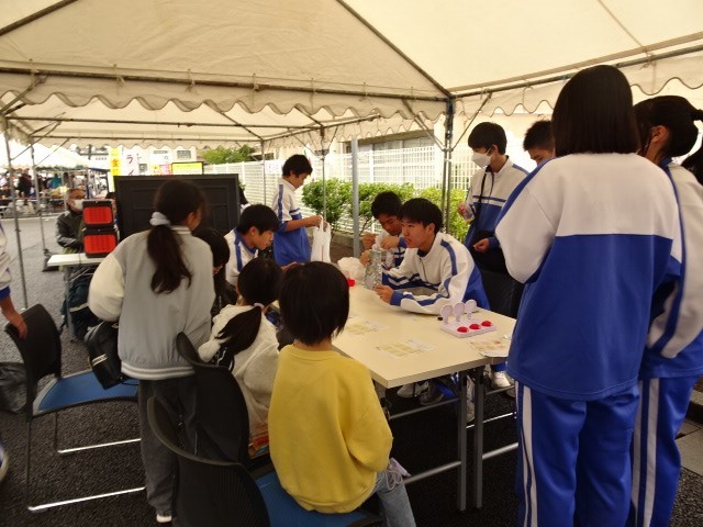 3年生の総合の学習でイベントスペースをいただきました。これまで学習したことを「企業とSDGs」「高架化」「金融」のグループは動画やパンフレットにまとめて発表したり、防災グループは防災クイズ、歴史グループは片浜地区の歴史スタンプラリーを計画するなど、楽しそうでした。