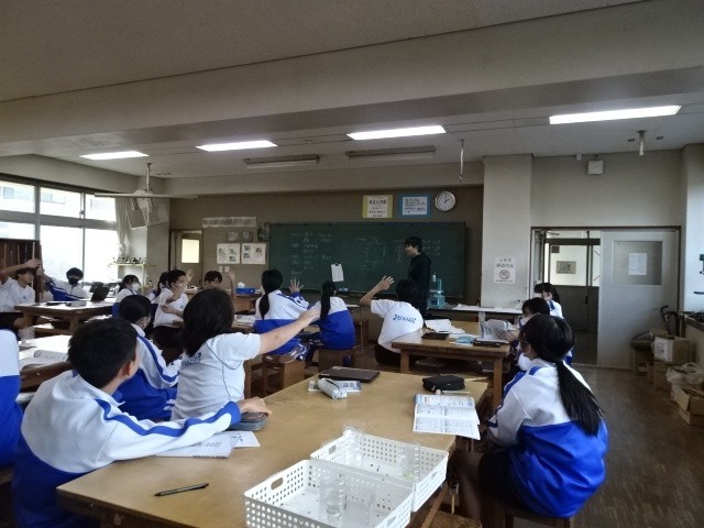 2年B組は技術家庭の技術です。情報の分野で、知的財産、著作権等の学習をしていました。今は、取り放題の画像や映像あふれていますが、実際にどういうものをダウンロードしてよいのか、著作者への影響はどうなのかを考えていました。