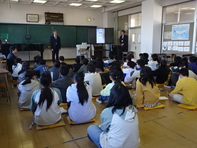 言語読解で片浜小6年生に協力してもらい、本校1年生が生成AIを使って作った「片浜の歌」が完成しました。本校では、毎日この曲を下校の曲として流しています。今日は、中学校の音楽教員が、完成した曲を6年生に歌ってもらうため、歌唱指導に行きました。声の出し方、姿勢等の話をした後、実際に歌ってみました。6年生は初めて歌うのにもかかわらず、上手に歌うことができました。20日(木)にもう一度、小学校に行かせていただきます。