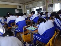 3年A組は国語です。明後日、3年生最後の学力調査があるので、過去問に挑戦。気になるポイントを確認していました。