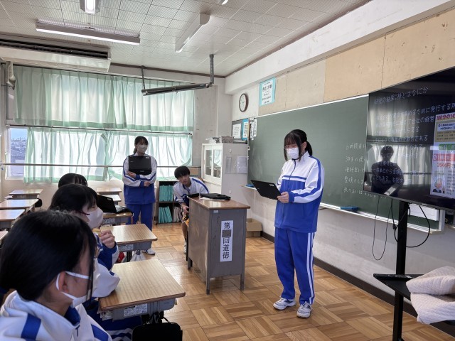 3年生は、5・6時間目に、今まで総合の学習でお世話になった方々をお招きして、まとめとしての発表会を行いました。まずは、5つのグループの発表です。発表後、お世話になった方々からグループにアドバイス等をいただきました。プレゼンテーションした資料を欲しいという方もいらっしゃいました。その後は、個人追究テーマを各教室に分かれて発表しました。個人の課題を深掘りした発表で、片浜地区のことを考えた発表ができていました。参観いただいた皆様、お世話になり感謝申し上げます。