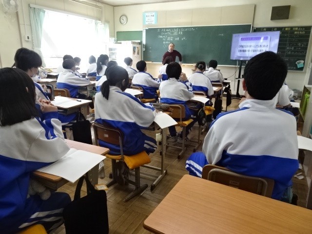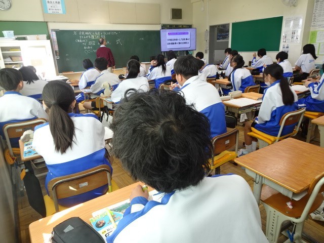 1年A組は社会です。奈良時代に聖武天皇が行った政治の学習です。東大寺の大仏をつくった方として、小学校で学習しましたが、聖武天皇は大きな改革を行っています。それについて何を、何のために行ったのか考えてました。