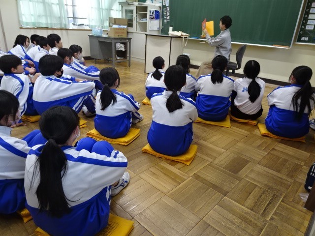 潮タイムは、地域の読み聞かせボランティアに方にお越しいただいての読み聞かせです。気持ちのこもった読みに、本の世界に引き込まれています。地域の皆様、ありがとうございました。この後、本の内容について、意見交換をし合いました。