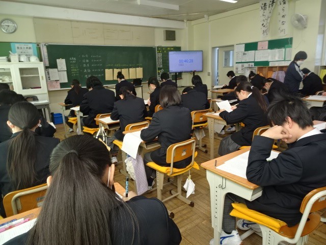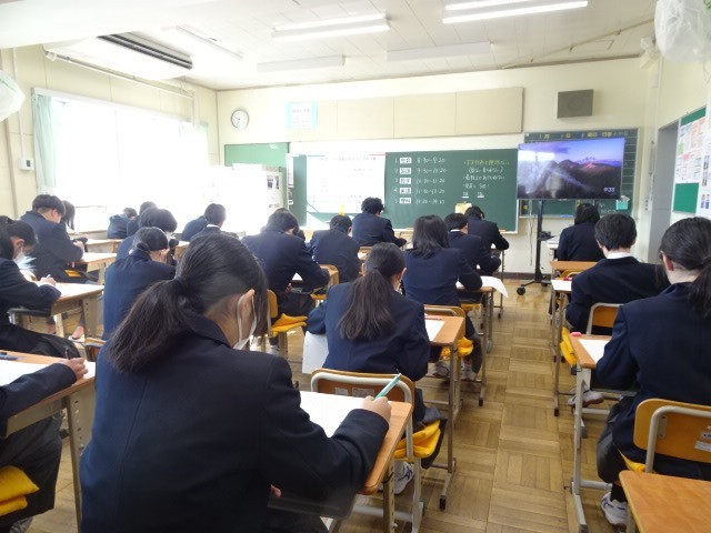 1・2年生は県の学力調査です。特に、1年生は初めての挑戦です。2年生も新年の抱負で、まずはこれに集中すると思っている生徒が多かったです。結果はどうでしょう。私たち教員も、この1年の指導を振り返り、今後の指導に生かす資料としていきます。