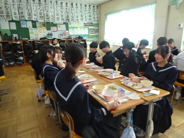 1・2年生は集団で楽しそうに話をしながら食べていました。