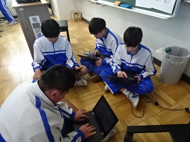 2年A組は、技術家庭の技術で、情報処理の学習です。2年生の1年間を振り返り、様々な情報を集め、それをポスターにまとめていくことになっています。まずは、2年生の振り返りです。どんなことがあったのか、記事にするには何が適当なのかを考えていました。