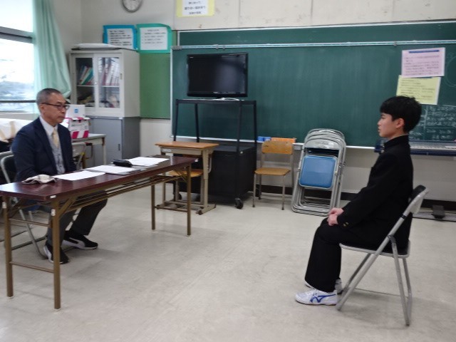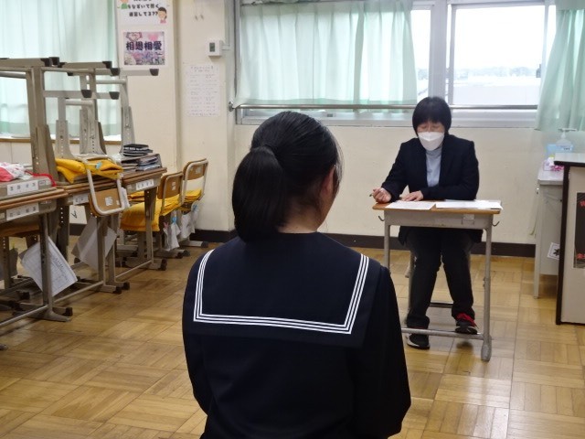 3年生は、潮タイムで面接練習です。1・2年や教頭先生に面接官になってもらい模擬面接を行い、指導を受けました。クラスでも練習を始め、仲間から様々なアドバイスを受けて臨みましたが、普段とは違う緊張感に包まれ、かなり表情が硬かったです。23日(金)に、もう一度行います。