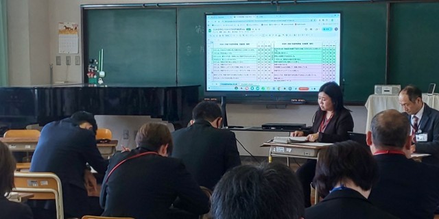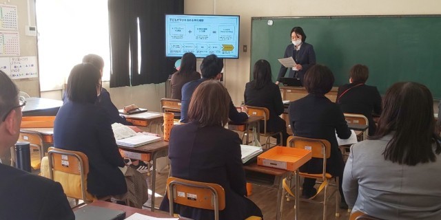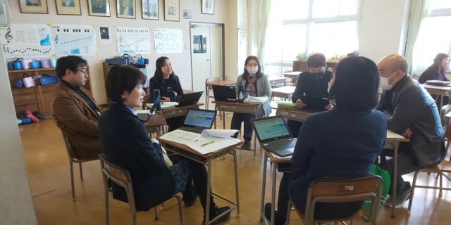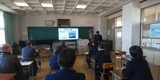 本年度最後の片浜小中での合同研修会を行いました。最初に、両校で今年度テーマにそれぞれで研修を進めてきた「単元を貫く授業」の実践について発表し合いました。本校ではロイロノートを活用した保健体育の課題作りへの取組等が紹介され、また、理科学習で社会での学習とを関連させた学習の例を発表しました。後半は、2学期末の学校評価を受けての成果と課題を教務主任から伝えてもらい、それを元に本年度取り組んできた活動の反省をするとともに、次年度に向けた取組案を出し合いました。