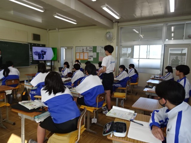 2年B組は社会です。北海道の学習に入ったところです。普段雪の降らない私たちの地域と比べて、環境や設備がかなり違っていることを、まずは写真から読み取っていました。