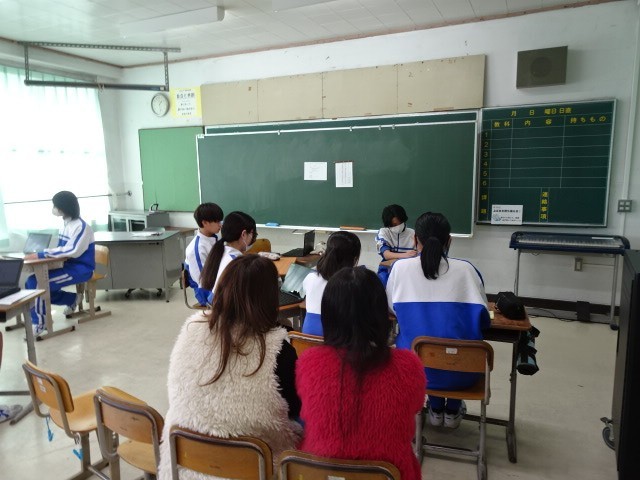 2年生は総合の発表会です。職業について、体験や対話、講話を通じて考えたことを各自でまとめ、それらについてパビリオン形式で、3つの教室に分かれて発表しました。どんな職業についても変わらないものがあるはずです。3年生に向けて新たな課題をもった生徒もいて頼もしかったです。」