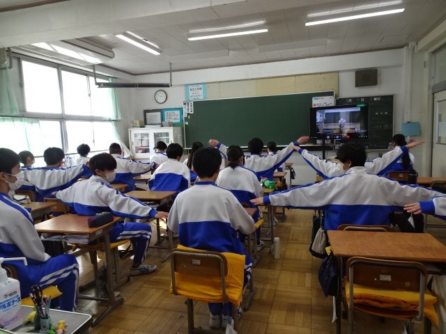 潮タイムは、椅子に座ってできるヨガ、いわゆる「チェアヨガ講座」を行いました。これまで、生徒の姿勢や体の使い方が気になっていました。本日は、「ヨガインストラクター富士山南麓チーム」でリーダーを務めている保科様が講師として来てくださいました。椅子に座って数種類の体の使い方、ヨガを教えてくださいましたが、少しやっただけで汗が出てきました。ちょっと気を抜くと、背筋が丸くなってしまう生徒がいるので、気をつけて生活できるとよいと思いますし、良い機会になったと思います。私は、明日、筋肉痛になりそうです。