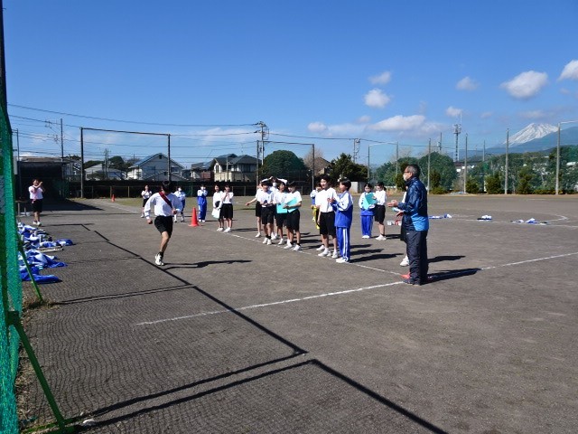 1年A組は保体です。駅伝を行っていました。声援がグラウンドに響いていました。