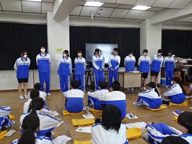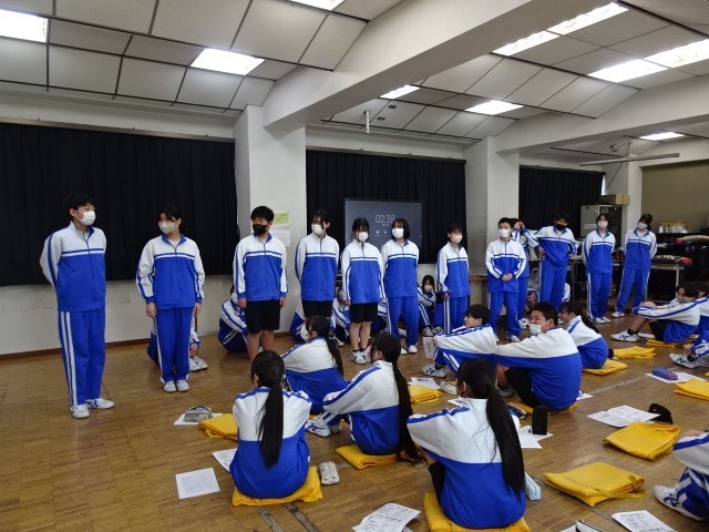 2年生は学年で集まって、様々な確認をしていました。まずは、昨日の職業講話を振り返って確認しておきたいこと、春休みの生活、修学旅行の実行委員の紹介、生徒会や専門委員会のメンバー紹介等を行いました。