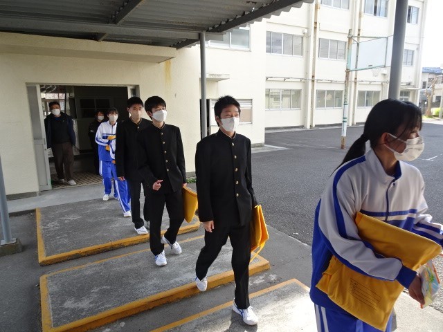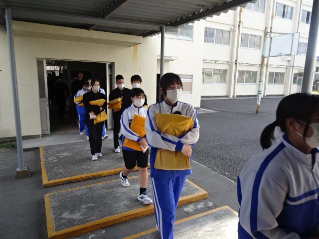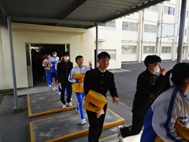 いよいよ3年生が、1・2年生が待つ体育館に入場です。