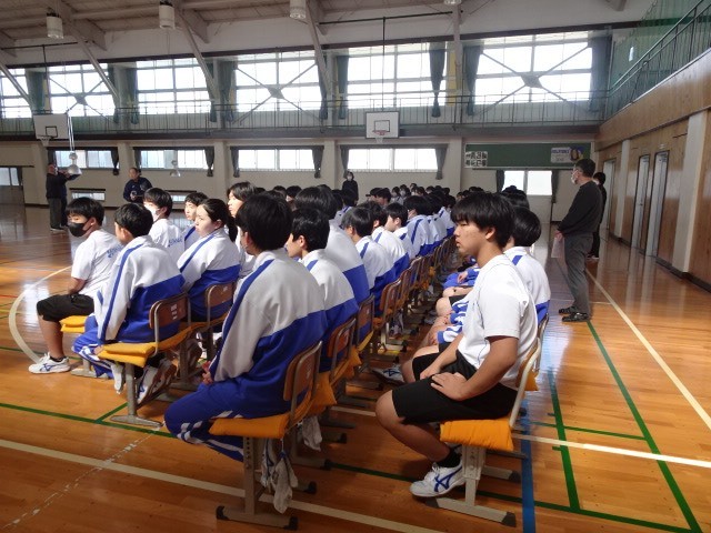 本日の午後は、1・2年生による卒業式の準備でした。体育館に椅子を持って集合し、それぞれの分担場所で清掃や準備を行いました。限られた時間の中で、頑張っていました。最後に、式での在校生としての役割の確認をして終了しました。