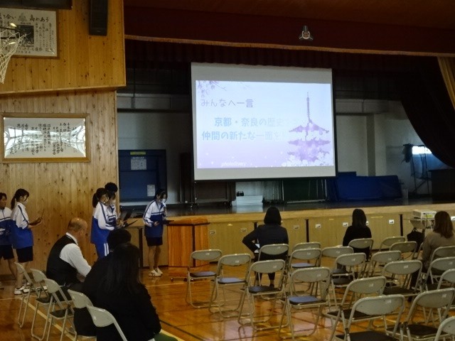 修学旅行説明会です。こちらもグランドデザインからの繋がり等を話をさせていただきました。学年主任の説明の後、実行員会及び各係担当生徒から具体的な説明がありました。ご参加いただいた皆様、ありがとうございました。
