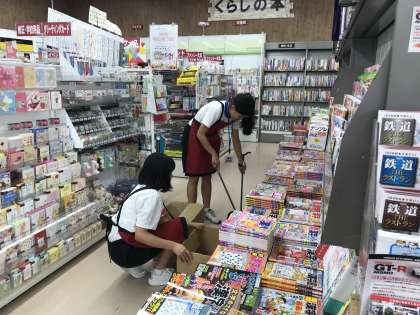 マルサン書店の様子です。店内清掃を行っていました。お客様が気持ちよく買い物ができるように隅々まできれいにしていました。