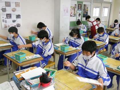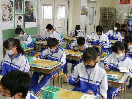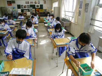 授業内容は、「風神雷神の屏風絵を描こう」です。