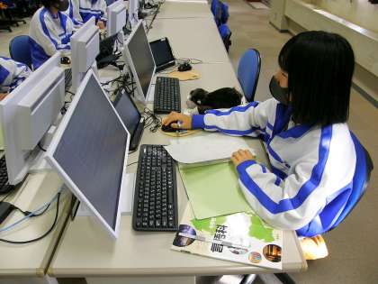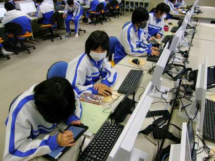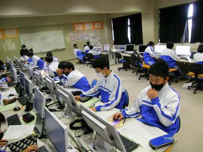 2年A組「言語読解」の授業の様子です。授業内容は、「行動宣言」です。新型コロナウイルスに感染せずに、よりよい生活を送るための取り組みを宣言するということです。