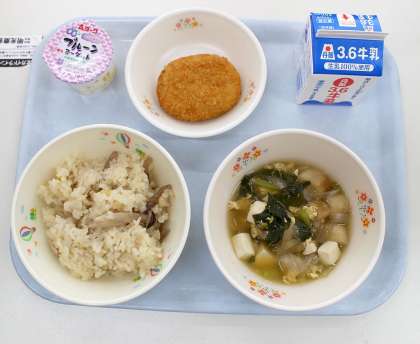 12月15日(火)今日の給食 公開日 2020/12/15 更新日 2020/12/15 今日の給食 今日の給食は、「吹き寄せおこわ」「里芋コロッケ」「おふと玉子の汁物」「プルーン入りヨーグルト」「牛乳」です。汁物の「小松菜」は、沼津産です。 いいね(0)