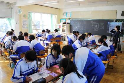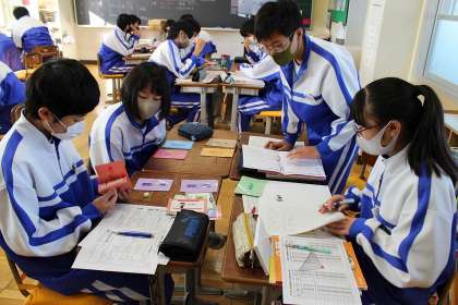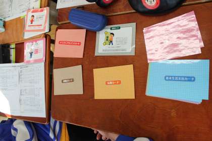 3年B組「社会」の授業の様子です。授業内容は、「生活設計〜マネープランゲーム」です。カードを使用しながら、楽しく学んでいます。