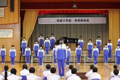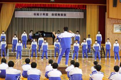 2年B組合唱の様子です。合唱曲は「手紙〜拝啓十五の君へ」です。