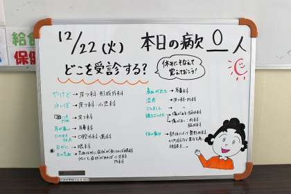 12月22日(火)今日の病欠者数