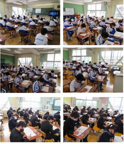 2〜6時間目にかけて、全学年でNRT(標準学力検査)を実施しています。自分の力がどれくらいなのか、検査しています。みんな真剣に取り組んでいます。