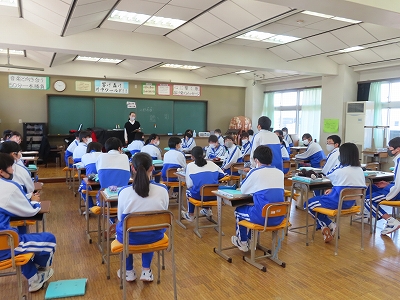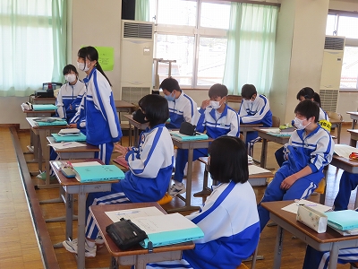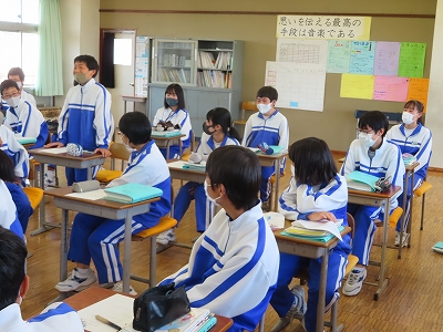 3B音楽:自己紹介を行っています。好きな音楽や自分のPRを行っています。役者がたくさんいますね。大変盛り上がっていました。