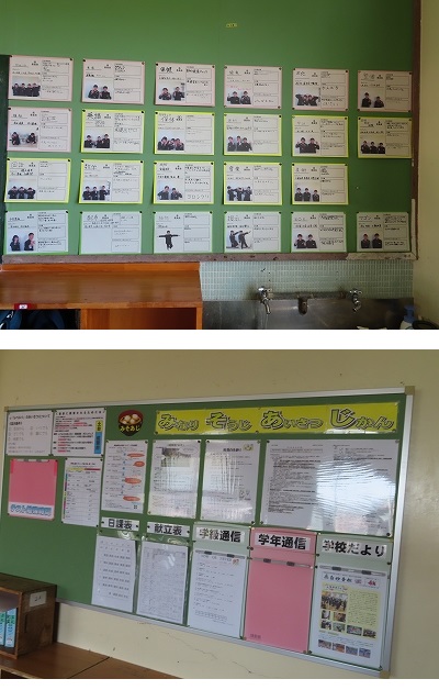教室内を見渡すとたくさんの掲示物があります。自己紹介、担任の思い、学習の過程…。ぞれぞれにたくさんの思いがこもっています。
