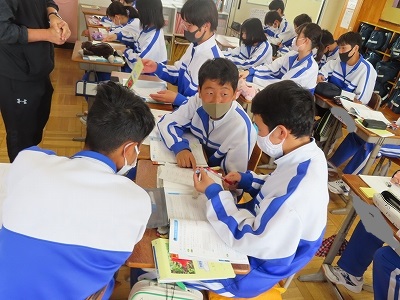 3B数学:学習したことの復習を行っています。分からないところなどをお互いに教え合っていました。