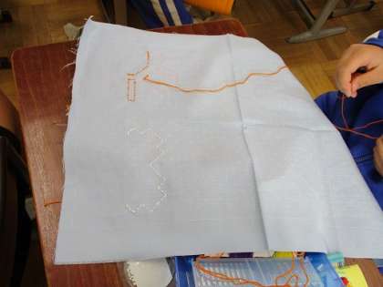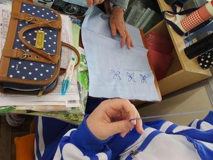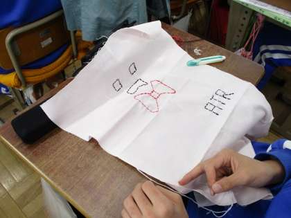 2B家庭科:刺繍をしています。初体験!という生徒も見られますが、なかなか上手な生徒も多いです。