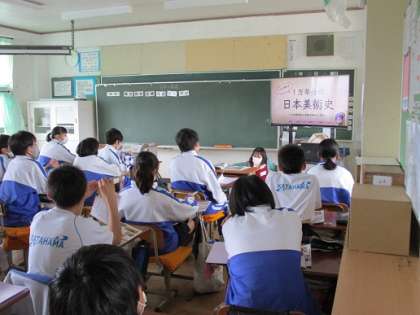 2A美術:美術の歴史の授業です。冒頭の時代区分はみんな良く理解できていました。続いて生徒に「わかりやすい」と評判の動画を用いての勉強です。