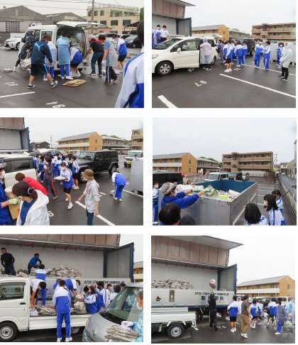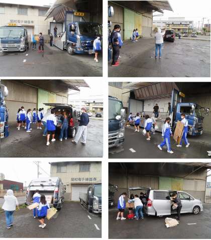 小雨が降る中、古紙回収を実施しました。生徒はもちろんのこと、保護者や地域の方が中心となって実施してくださっています。雨の中の車の誘導や新聞紙、雑誌、布などの選別等、組織だって、スムーズに行っていました。本当にありがとうございました。