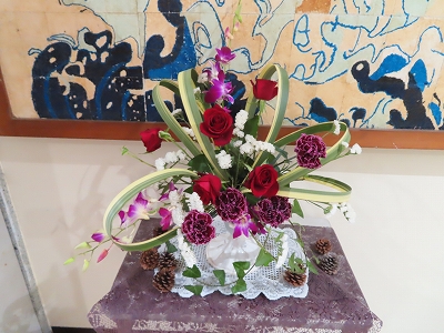 家庭科の先生が、玄関に花を生けてくださっています。御来校の際には、ぜひ御覧ください。