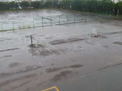 大雨警報が解除されないため、本日は「休校」とします。