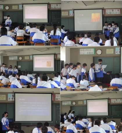 7/5(月)3B授業風景 公開日 2021/07/05 更新日 2021/07/05 記事 3B音楽:「曲の魅力をプレゼンしよう」をテーマとした各班の発表でした。どの斑も曲の特徴をよく捉えていました。 いいね(0) 3年生