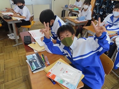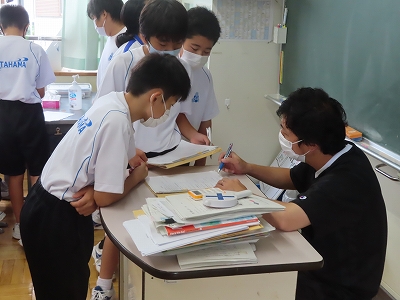 Be動詞の疑問文の確認を行っています。会話が成り立つように、文を組み立てています。