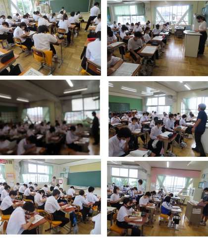 夏休みの生活について、各学級でしおりを用いて確認しています。夏休みの過ごし方やルール、健康面についてどんなように過ごしていけばよいのか、考えながら確認しています。3年生は高校一日体験入学の確認も行っていました。