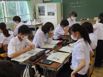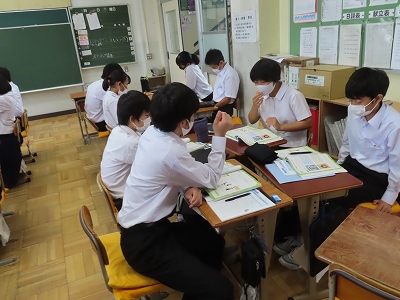 自分の街の観光プランの英文を読んで、何に、どんなところに興味をもっているのか、読み取っています。