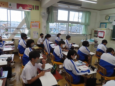遺伝のしくみです。理科室があまりにも蒸し暑いため、まとめは教室で行っています。