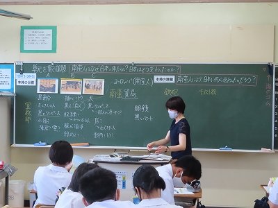 「南蛮人はなぜ日本に来たのか、日本馬どう変わったのか」を目標に学習に取り組んでいます。南蛮人により、日本に何が伝わったのか、考えていました。