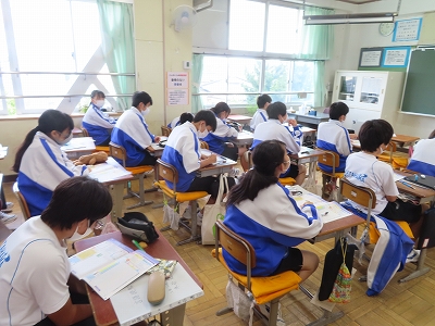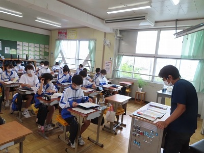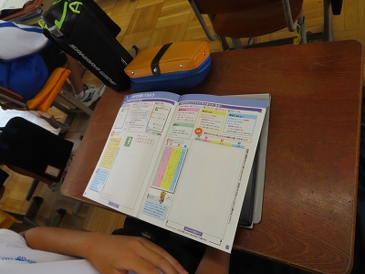 手紙の書き方について学習しています。時候のあいさつ、宛名の書き方など、基本的な部分を確認しています。