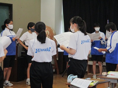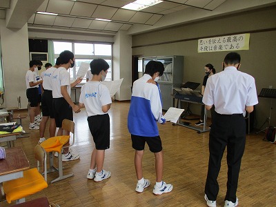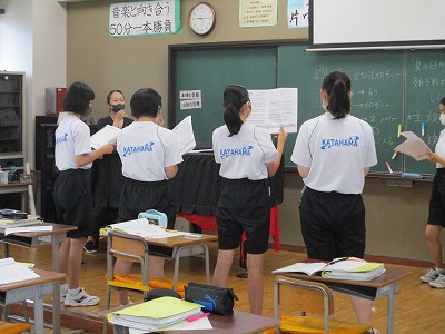 2B音楽:合唱コンクール課題曲の練習です。男女に分かれて熱心に取組んでいました。
